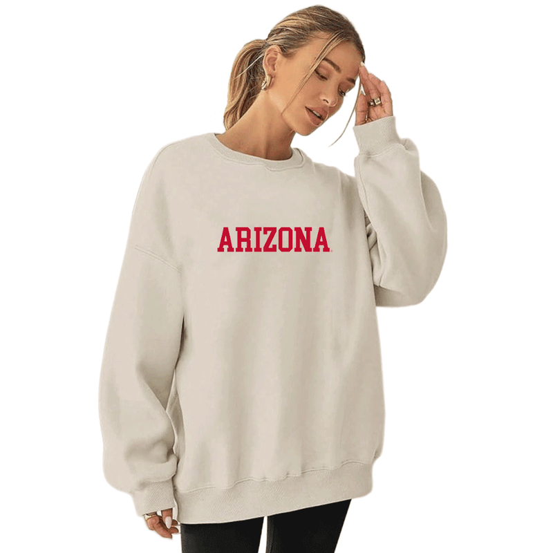 University of Arizona Embroidered Taupe Crewneck